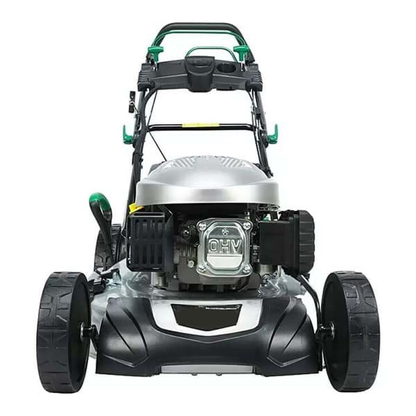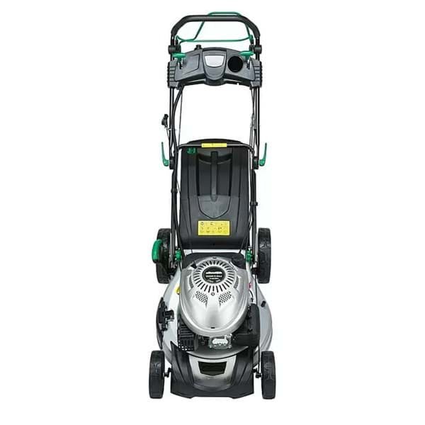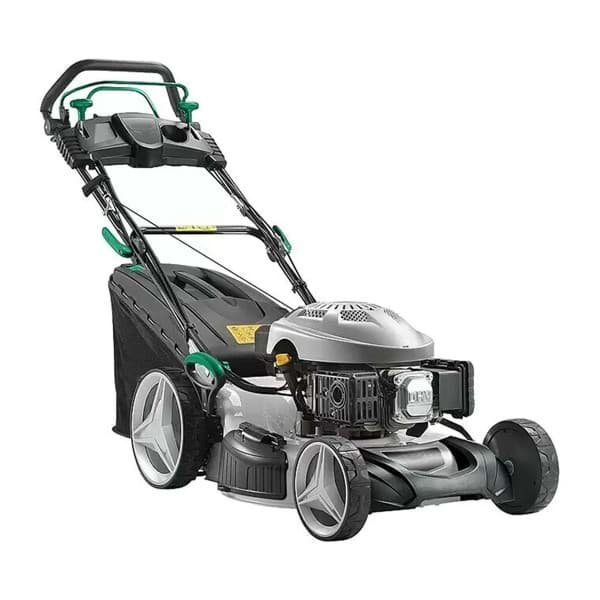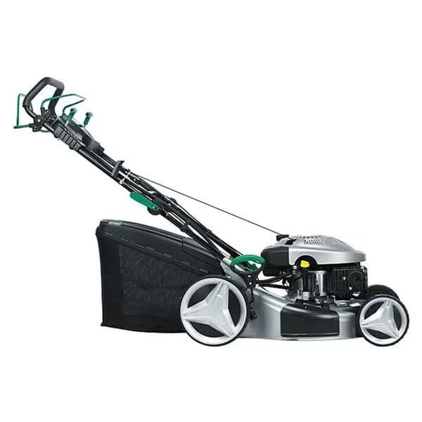 Der kraftvolle Benzin-Rasenmäher besticht durch sein modernes Design und einen leistungsstarken Motor mit 2,9 kW (entspricht ca. 3,77 PS). Dank der extragroßen, kugelgelagerten Hinterräder mit „easy to push“- Funktion werden Bodenunebenheiten besser ausgeglichen und garantieren so ein schönes Schnittbild und eine komfortable Führung. Die Schnittbreite des Rasenmähers beträgt 51 cm und ist für Rasenflächen bis 1.900 m² gut geeignet. Seine Schnitthöhe ist von 25 mm bis 75 mm 7-fach verstellbar. Der großzügige Harttop- Auffangsack mit einem Volumen von 60 l verfügt über eine Füllstandsanzeige und sammelt Rasenschnitt zuverlässig ein. Durch die praktische 3-in-1-Funktion kann man jedoch frei entscheiden, ob der Fangsack das Mähgut auffängt, ob es zur Seite ausgeworfen werden soll oder ob der Rasenschnitt zum Mulchen ausgeworfen wird. Um die verschiedenen Funktionen nutzen zu können, werden ein Kombi-Messer und ein Mulchkit mitgeliefert. Das robuste Gehäuse aus Stahl verspricht eine lange Lebensdauer und durch einen ergonomischen Führungsholm mit Deluxe-Cockpit ist für komfortables Rasenmähen gesorgt.