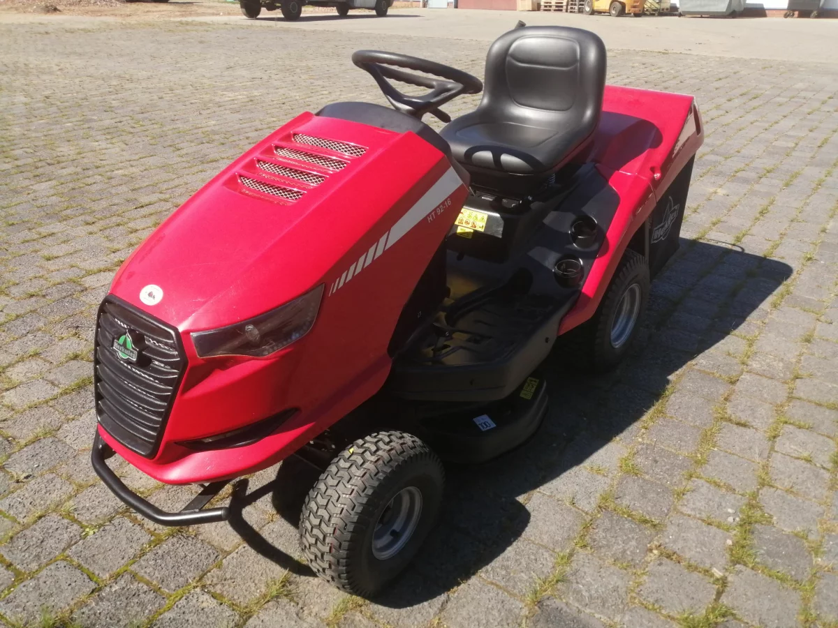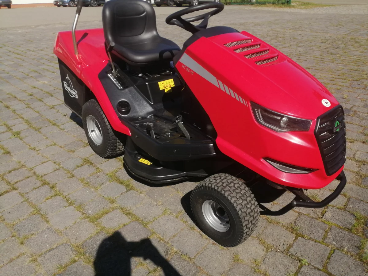 Der neue Herkules HT Rasentraktor HT 92 – 16 überzeugt durch ein modernes Design, faszinierende Komfort-Ausstattung sowie hochwertige Technik. Die technische Ausstattung lässt bei diesem Modell keine Wünsche offen. Durch das schräg angelegte Zwei-Messer-Mähwerk mit 92 cm wird ein perfektes und sauberes Schnittbild erreicht. Das Schnittgut gelangt dank eines aerodynamisch geformten Auswurfkanals schnell und effizient in den 300 l großen Grasfangkorb. Der geringe Wendekreis, die einfache ergonomische Bedienung sowie die exzellenten Fahreigenschaften machen das Rasenmähen zum Vergnügen. Mit leistungsstarkem Motor bis 12 kW, Comfort-Sitzen mit optimalen Verstellmöglichkeiten sowie großer Bereifung wird ein bequemes Arbeiten auch bei hoher Einsatzdauer ermöglicht. Die formschönen LED-Scheinwerfer und der neue perfekt ins Fahrzeugdesign integrierte Bedienhebel zur Höhenverstellung des Mähwerks werden mit viel Liebe zum Detail abgerundet.