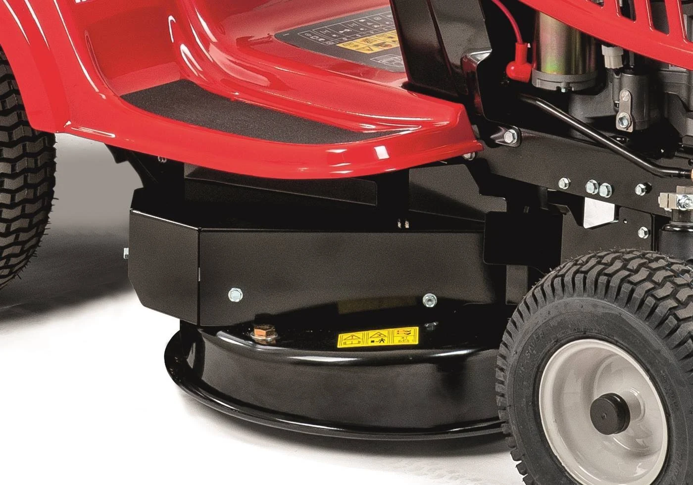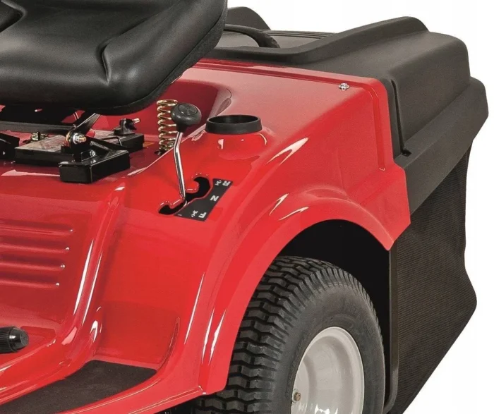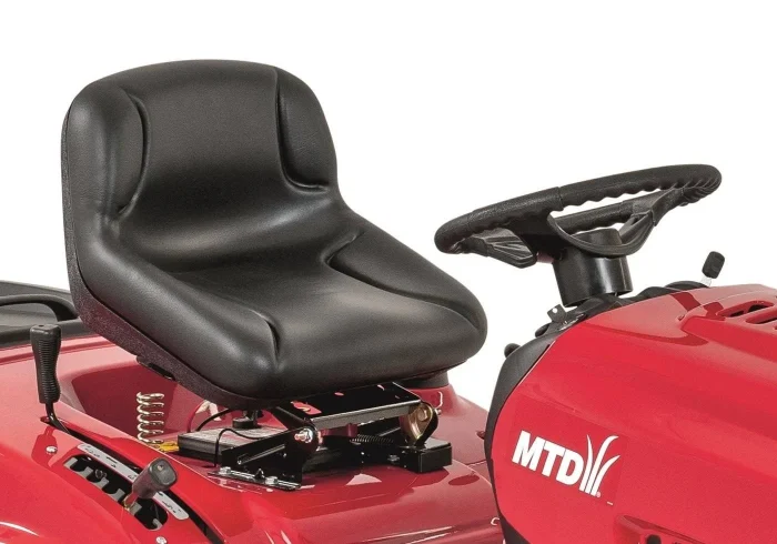 Der MTD 92 ist ein robuster Rasentraktor mit Heckauswurf und 92 cm Schnittbreite, geeignet für Rasenflächen bis 3.500 qm. Für alle, die mehr Leistung fürs Geld wollen. Der 382 ccm MTD-Einzylinder leistet starke 7,1 kW und ist auch für schwierigere Geländeformen geeignet. Hier hilft ihm sein robustes Transmatic-Getriebe mit 6 Vorwärts- und 6 Rückwärtsgängen, die pendelnd aufgehängte Vorderachse sowie sein kleiner Wendekreis von nur 46 cm. Der mitgelieferte Fangkorb hat ein Volumen von 240l, optional können Sie den MTD 92 mit einem Mulchkit ausstatten und so das Schnittgut einfach zur Düngung nutzen. Das stabile Stahl-Mähwerk mit 2 Messern ist in 5 Stufen von 30 bis 95 mm verstellbar. Mit den hellen Frontscheinwerfern ist auch das Arbeiten in der Dämmerung kein Problem. Für Komfort beim Mähen sorgt der bequeme, verstellbare Sitz sowie der Durchsteigerahmen. Alle Bedienelemente sind so angeordnet, dass sie sicher und schnell erreicht werden können. Über die optionale Anhängerkupplung nutzen Sie ein umfangreiches Sortiment an Anhängern und anderen Anbaugeräten. Mit den diversen Transportanhängern, Rasenwalzen, Streuern, Sprühanhängern, dem Rasen- und Laubkehrer, Rasenkamm, Rasenlüfter und schließlich dem Schneeräumschild wird Ihr MTD 92 zum Helfer rund um Haus, Hof und Garten für wirklich jede Jahreszeit.